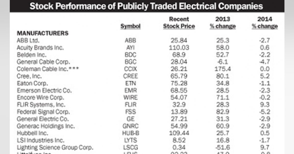 Stock Performance Of Publicly Traded Electrical Companies Electrical Marketing